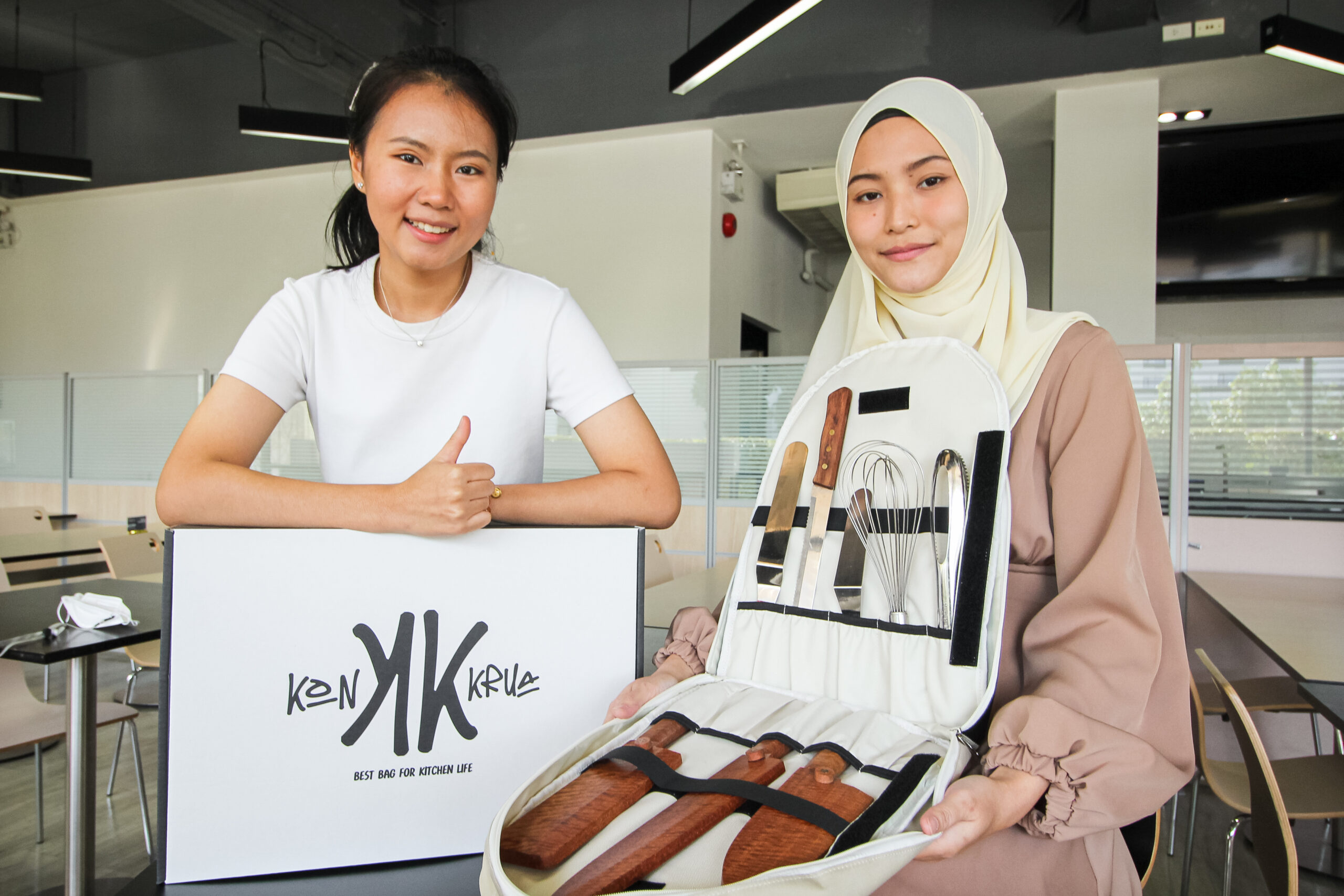 ด้วยเหตุนี้เอง เบลล์และไอด้าจึงได้ไอเดียในการออกแบบธุรกิจที่สามารถแก้ปัญหาที่เกิดขึ้นได้ นั่นก็คือ “กระเป๋าครัว” นั่นเอง ซึ่ง ณ ปัจจุบัน ทั้งสองคนได้ออกแบรนด์กระเป๋าครัวดีไซน์น่ารักภายใต้ชื่อ “Konkrua”