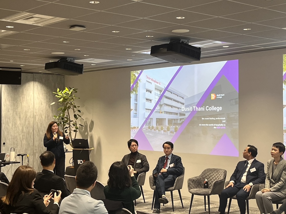 โดยในวันที่ 23 มกราคม 2569 คุณพิชยาได้เข้าเยี่ยมชมสถาบัน Tsuji Culinary Institute เมืองโตเกียว พร้อมทั้งร่วมประชุมกับ Mr. Kubo Yoshihiro และ Mr. Saito Satoshi ทั้งนี้สถาบัน Tsuji Culinary Institute เป็นสถาบันที่มีความร่วมมือทางวิชาการร่วมกันกับวิทยาลัยดุสิตธานีมาอย่างยาวนาน ซึ่งการพบปะในครั้งนี้ได้มีการปรึกษาหารือเพิ่มเติมเกี่ยวกับการขยายความร่วมมือทางการศึกษาในแนวทางอื่นๆ เพื่อส่งเสริมให้เกิดโอกาสใหม่ๆ และประโยชน์สูงสุดทางด้านการศึกษาแก่นักศึกษาของทั้งสองสถาบัน นอกจากนี้คุณพิชยาได้เข้าร่วมการประชุมสัมมนา APacCHRIE Tokyo Symposium 2026 ณ อาคาร Tokyo Midtown Yaesu โดยคุณพิชยาได้รับเชิญให้เป็นผู้ร่วมอภิปรายในหัวข้อ “Future of Tourism and Hospitality Education”