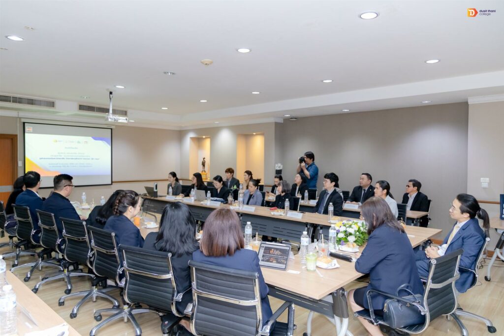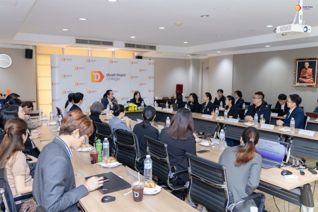 เมื่อวันที่ 9 ธันวาคม 2568 วิทยาลัยดุสิตธานี สถาบันการศึกษาด้านธุรกิจบริการชั้นแนวหน้าในเครือโรงแรมดุสิตธานี ได้ร่วมกับ จุฬาลงกรณ์มหาวิทยาลัย และเดอะ ฟู้ด สคูล (The food school) ประชุมหารือแนวทางความร่วมมือโครงการวิจัย: ต้นแบบนวัตกรรมอาหารสุขภาพ “GIN-D” เพื่อเสริมสร้างพื้นที่สุขภาวะ เศรษฐกิจ สู่การดำรงชีวิตในสังคมไทยอย่างยั่งยืน โดยมี ดร.อรรถเวทย์ พฤกษ์สถาพร อธิการบดี พร้อมด้วย ศ.ดร.ชนาธิป ผาริโน กรรมการสภาวิทยาลัยดุสิตธานี และคณะผู้บริหารวิทยาลัยดุสิตธานี เข้าร่วมหารือกับคณะนักวิจัยจากจุฬาลงกรณ์มหาวิทยาลัย นำโดย รศ.ดร.พรรณี ชีวินศิริวัฒน์ ผู้ช่วยอธิการบดีด้านวิจัย ศ.ดร.จิตรลดา อารีย์สันติชัย คณบดีวิทยาลัยวิทยาศาสตร์สาธารณสุขและหัวหน้าโครงการ ผศ.ดร.ศรเนตร อารีโสภณพิเชฐ คณะครุศาสตร์ ผศ.ดร.ฐิติรัตน์ ปั้นบำรุงกิจ สถาบันเอเชียศึกษา รศ.ดร.ปริญญ์ เจียรมณีโชติชัย คณะสถาปัตยกรรมศาสตร์ และ รศ.ดร.สกุลธรรม เสนาะพิมพ์ คณะวิทยาศาสตร์ นอกจากนี้ในความร่วมมือกันครั้งนี้ได้มีบริษัทอายิโนะโมะโต๊ะ ซึ่งเคยได้ทำโครงการเกี่ยวกับอาหารสุขภาพ โดยมีเป้าหมายในการสร้างสังคมสุขภาพดีด้วยองค์ความรู้ด้านวิทยาศาสตร์และกรดอะมิโน เข้าร่วมหารือด้วย