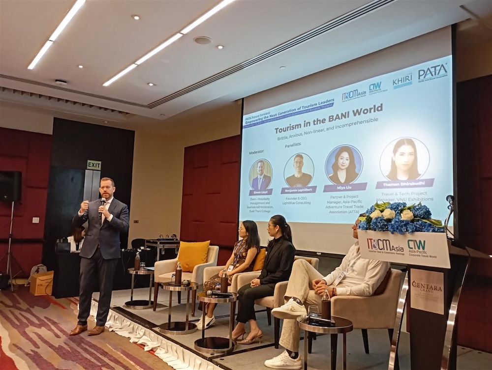 ในงานดังกล่าว วิทยาลัยดุสิตธานี สถาบันการศึกษาชั้นแนวหน้าด้านธุรกิจบริการในเครือโรงแรมดุสิตธานี ก็ได้เข้าร่วม โดยมีคุณไซม่อน เดวิท ลอยด์ คณบดีคณะการจัดการการบริการ วิทยาลัยดุสิตธานี ได้รับเชิญให้เป็นผู้ร่วมเสวนาในหัวข้อ Tourism in the BANI World (Brittle, Anxious, Nonlinear, and Incomprehensible (BANI)) ขณะที่ช่วงกิจกรรม Tourism Challenge Lab: Skills for the Real World ซึ่งเป็นการนำนักศึกษาจากนานาชาติราว 70 คน มาแบ่งเป็น 7 กลุ่ม เพื่อแข่งขันหาคำตอบให้กับโจทย์สมมติที่เกี่ยวกับการบริการและการท่องเที่ยว