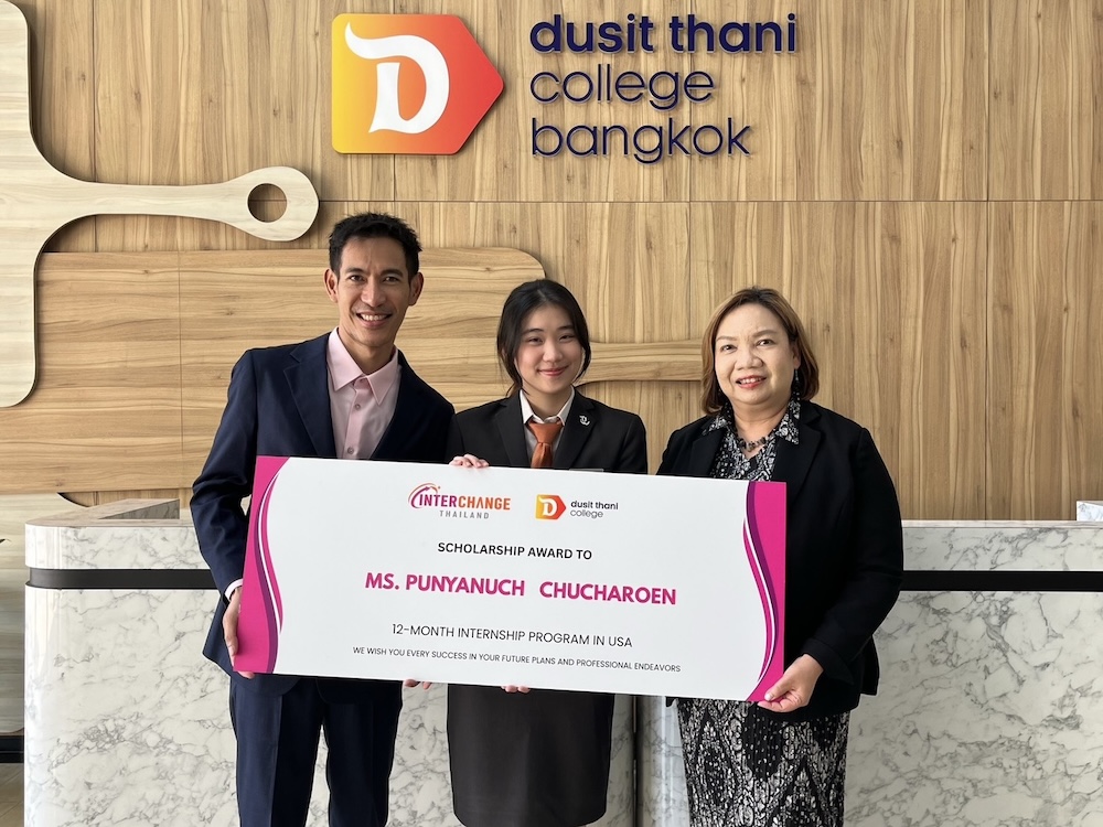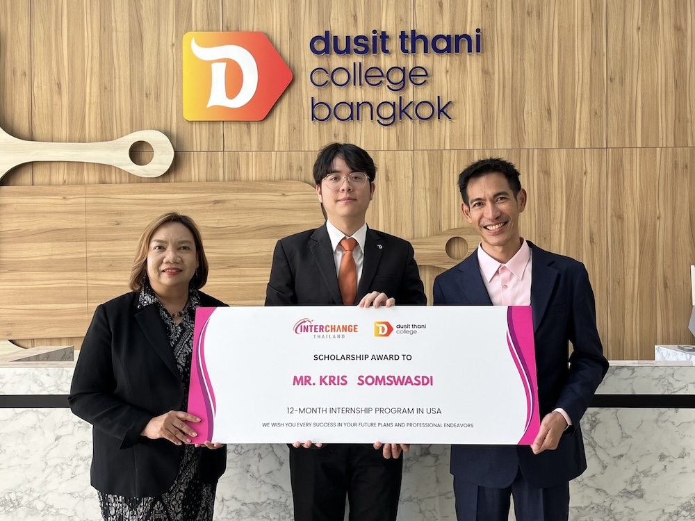 วิทยาลัยดุสิตธานี สถาบันอุดมศึกษาเอกชนชั้นนำด้านการโรงแรมและศิลปะการประกอบอาหารในเครือโรงแรมดุสิตธานี นำโดย ดร.ประวีณา คาไซ รองอธิการบดีฝ่ายกิจการนักศึกษา ได้เป็นสักขีพยานในโอกาสที่นักศึกษาและศิษย์เก่าวิทยาลัยดุสิตธานี ได้รับทุนฝึกงานจากบริษัท อินเตอร์เชนจ์ ทีเอช จำกัด (Interchange Thailand) ซึ่งประกอบด้วย