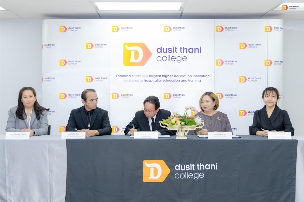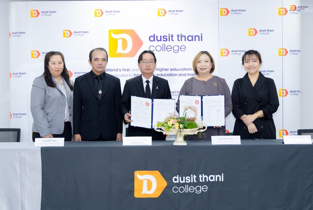 ในโอกาสร่วม “ลงนามบันทึกข้อตกลงความร่วมมือทางวิชาการ (MOU)” ระหว่าง วิทยาลัยดุสิตธานี กับ วิทยาลัยอาชีวศึกษาออมสินอุปถัมภ์ ซึ่งนำโดย นายเทอดธรรม สุวิชาวรพันธุ์ ผู้ลงนามแทนผู้รับใบอนุญาต นายเริงศักดิ์ วิเศษ ผู้อำนวยการวิทยาลัยอาชีวศึกษาออมสินอุปถัมภ์ และนางสาวกมลรัตน์ ปลิ่มกมล รักษาการรองผู้อำนวยการฝ่ายวิชาการ เพื่อเปิดโอกาสทางการศึกษาให้กับนักศึกษาของท่านในการศึกษาต่อระดับอุดมศึกษา และเสริมสร้างความร่วมมือระหว่างสถาบัน และประสานความร่วมมือในการจัดการเรียนการสอนให้กับนักเรียนหรือนักศึกษาในเตรียมความพร้อมของนักศึกษา ให้มีทักษะและความรู้ที่สอดคล้องกับความต้องการของการทำงานในอุตสาหกรรมบริการอย่างแท้จริง