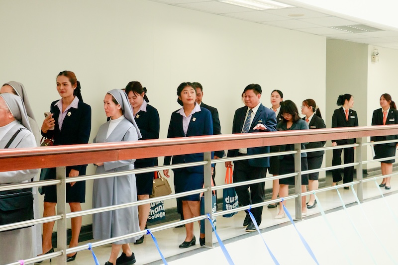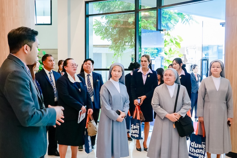 เมื่อวันที่ 20 มิถุนายน 2568 ดร.ประวีณา คาไซ รองอธิการบดีฝ่ายกิจการนักศึกษา วิทยาลัยดุสิตธานี พร้อมด้วย นางสาวปณิชา แป้นพัฒน์ รองคณบดีคณะการจัดการการบริการ คุณรักเกล้า ตั้งกุลพานิชย์ ผู้ช่วยอธิการบดีสำนักรับสมัครนักศึกษา และคุณสิทธิพล นุ่นสุข ผู้อำนวยการสำนักรับสมัครนักศึกษา ได้ต้อนรับคณะผู้บริหารและคณาจารย์จาก 2 โรงเรียน ได้แก่ โรงเรียนเซนต์โยเซฟระยอง และ โรงเรียนอัสสัมชัญคอนแวนต์ ลำนารายณ์ ในโอกาส “ลงนามบันทึกข้อตกลงความร่วมมือทางวิชาการ (MoU)” ระหว่างวิทยาลัยดุสิตธานีกับทั้งสองโรงเรียนดังกล่าว เพื่อประสานความร่วมมือในการจัดการเรียนการสอนให้กับนักเรียนระดับชั้นมัธยมศึกษา
