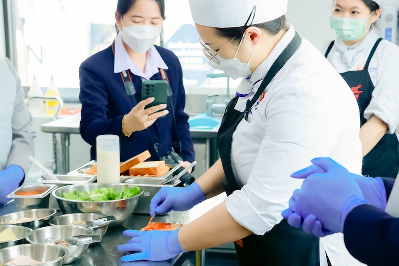 ทั้งนี้คณะผู้บริหารและคณาจารย์ทั้งสองโรงเรียนได้เดินเยี่ยมชม D Corner รวมทั้งได้ร่วมกิจกรรม “การทำแซนด์วิชอย่างง่าย” โดยอาจารย์ประจำสาขาวิชาศิลปะการประกอบอาหาร และกิจกรรม “การผสมเครื่องดื่ม” โดยอาจารย์ประจำ สาขาวิชาการจัดการโรงแรม จากนั้นรับประทานอาหารกลางวัน ณ โรงแรมดุสิต ปริ๊นเซส ศรีนครินทร์ ร่วมกัน ก่อนเดินทางกลับโรงเรียน