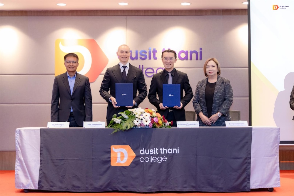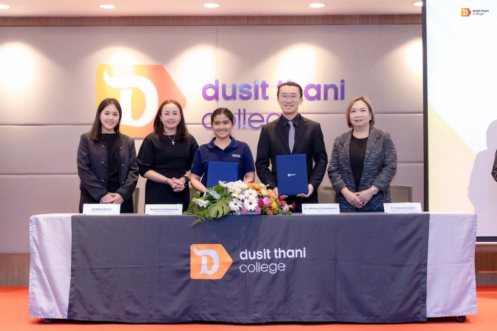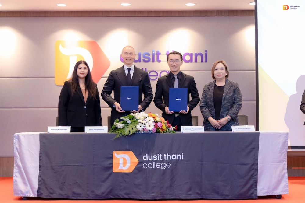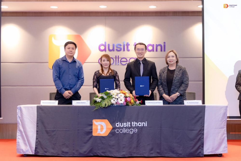 เมื่อวันที่ 28 ตุลาคม 2568 ทีผ่านมา วิทยาลัยดุสิตธานี นำโดย ดร.อรรถเวทย์ พฤกษ์สถาพร อธิการบดี และ ดร.ประวีณา คาไซ รองอธิการบดีฝ่ายกิจการนักศึกษา ได้ลงนามบันทึกข้อตกลงความร่วมมือทางวิชาการ (MoU) กับโรงแรมระดับสากลชั้นนำรวม 10 แห่ง ได้แก่ Amari Bangkok, A’more Hotels & Resorts, Anantara Chiang Mai Resort, Anantara Golden Triangle Elephant Camp & Resort, Carlton Hotel Bangkok Sukhumvit, Navera Phuket – Mgallery Collection, Novotel Bangkok Future Park Rangsit, Riva Arun Bangkok, Riva Surya Bangkok และ VIE Hotel Bangkok ณ ห้องศรีนครินทร์ฮอลล์ วิทยาลัยดุสิตธานี กรุงเทพฯ