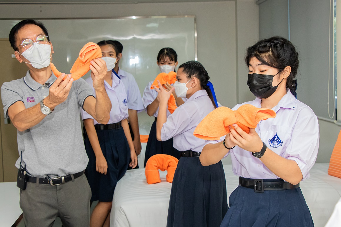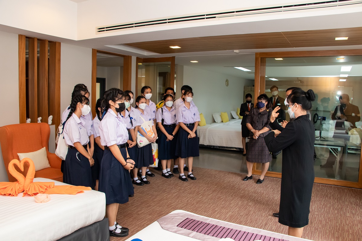 ทั้งนี้ คณะครูและนักเรียนจากโรงเรียนเศรษฐเสถียร ในพระราชูปถัมภ์ ได้เดินเยี่ยมชมวิทยาลัยเพื่อดูการเรียนการสอน ตลอดจนเรียนรู้ความพร้อมทางด้านเครื่องมือ อุปกรณ์ ห้องปฏิบัติการ และสิ่งอำนวยความสะดวกต่าง ๆ ของวิทยาลัย และร่วมทำกิจกรรมการพับผ้าเป็นรูปสัตว์ต่าง ๆ และเทคนิคการปูเตียง โดย อ.จรูญศักดิ์ สุนันต๊ะ อาจารย์ประจำกลุ่มวิชาการจัดการงานสถานที่และห้องพัก เพื่อเป็นการสร้างความสัมพันธ์ระหว่างสถาบัน และเพื่อให้ผู้เข้าร่วมกิจกรรมสามารถนำความรู้ไปใช้ประโยชน์ต่อไป