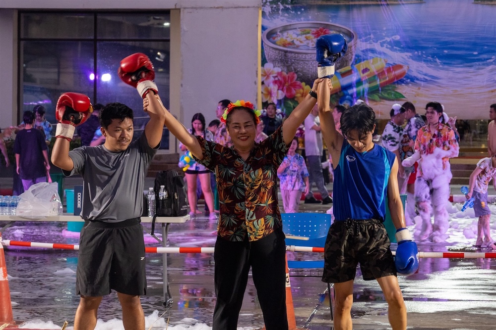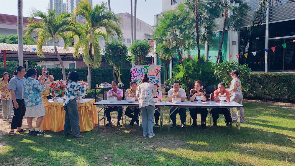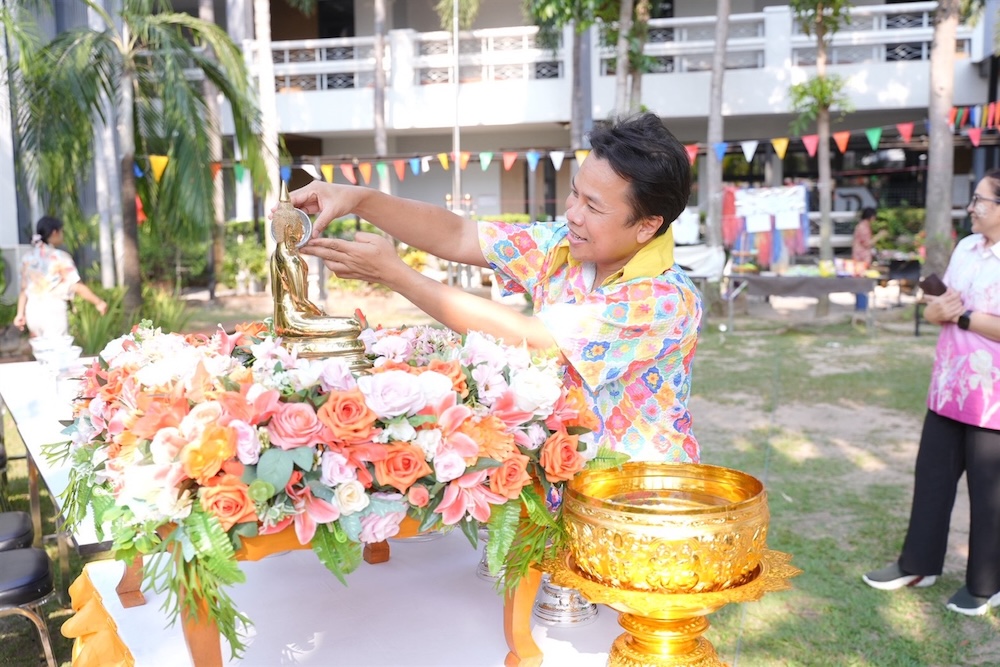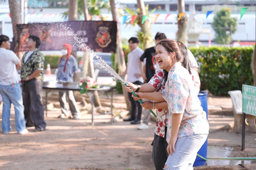 ในขณะที่ วิทยาลัยดุสิตธานี ศูนย์การศึกษาพัทยา จัดขึ้นเมื่อวันที่ 9 เมษายน 2569 ภายใต้ชื่องาน “ดุสิตธานี สงกรานต์สาดสุข 2569″ โดยได้เปลี่ยนบรรยากาศภายในลานมะฮอกกานีในวิทยาลัยให้กลายเป็นลานวัดที่เต็มไปด้วยความสนุกสนาน เริ่มต้นด้วยกิจกรรมสรงน้ำพระพุทธโสธรและร่วมรดน้ำดำหัวคณาจารย์และบุคลากรเพื่อความเป็นสิริมงคลเนื่องในวันขึ้นปีใหม่ไทย ก่อนจัดกิจกรรมสุดสนุกจากชมรมต่างๆ ร้านค้าอาหารและเครื่องดื่มจากบุคลากรและนักศึกษา พร้อมพาย้อนวันวานกลับไปวิ่งเล่นในงานวัดเหมือนเช่นในวัยเด็กกับการละเล่นพื้นบ้าน อาทิ เก้าอี้ดนตรีเฮฮา น้ำสาดสุข และเกมเติมน้ำเติมสุข ท่ามกลางเสียงหัวเราะและรอยยิ้มจากทุกคนภายในงาน